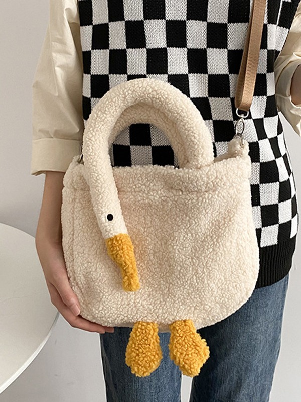 Goose Pattern Fleece Crossbody HandBag