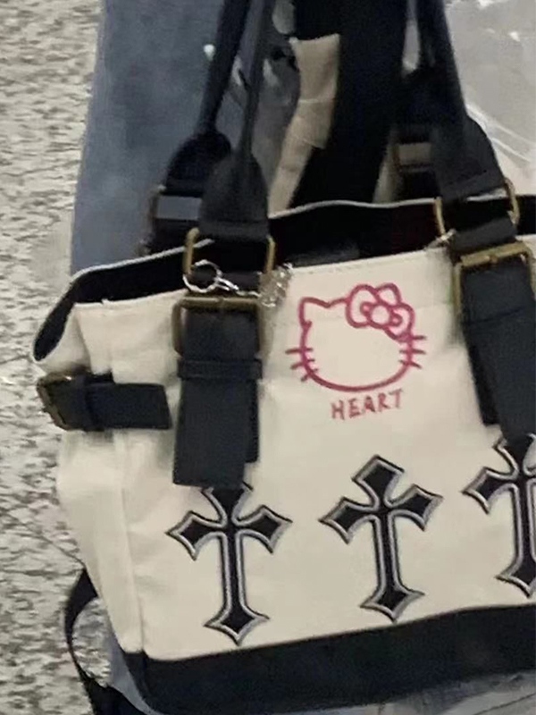 Chain Design Cross Canvas Tote Bag