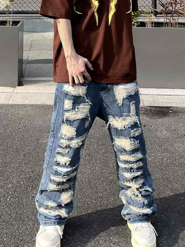 Men’s Washed Ripped Flare Loose Jeans