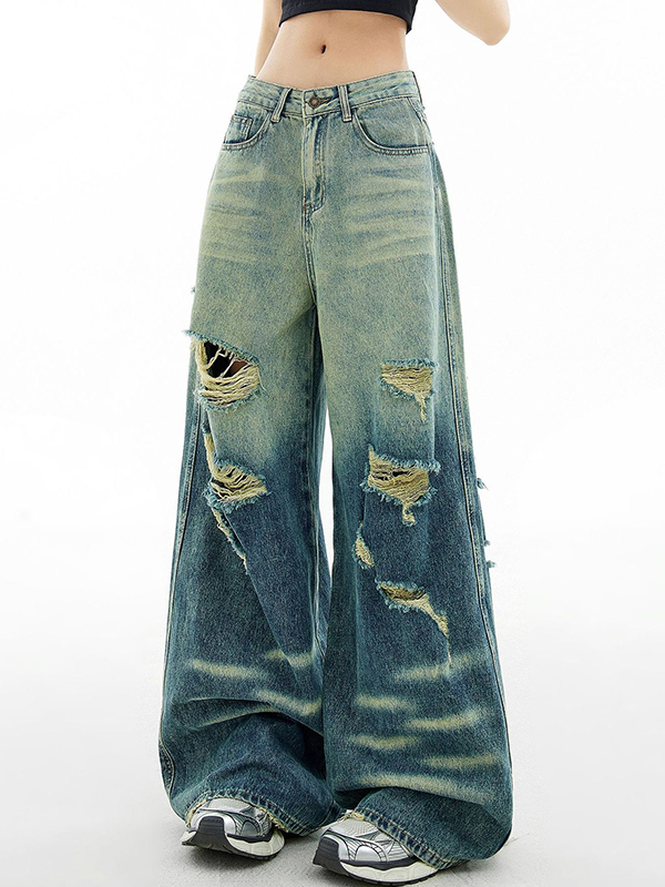 Retro Washed Distressed Multiple Pockets Cargo Jeans