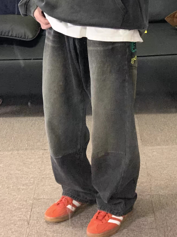 Men’s Contrast Patch Ripped Side Zip Up Straight Leg Pants