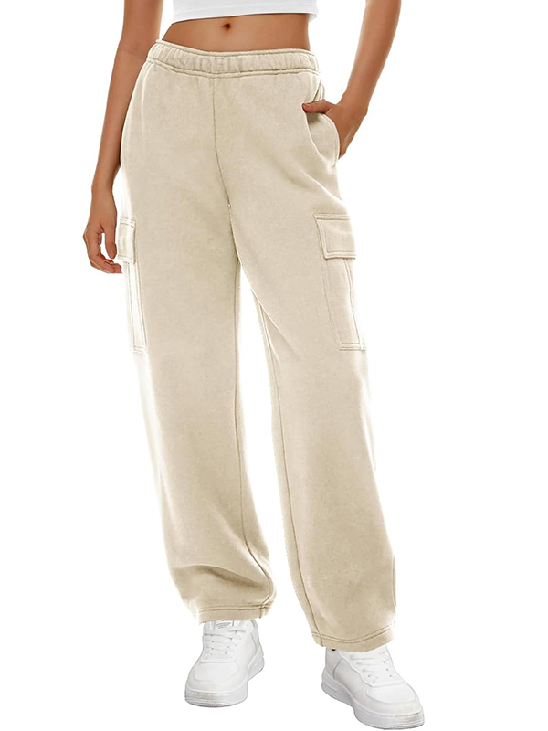 Solid Multi Pocket Elastic Waist Sweatpants