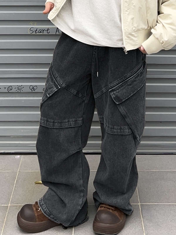 Retro Washed Distressed Multiple Pockets Cargo Jeans