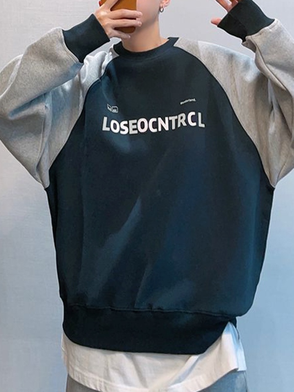 Men’s Raglan Letter Print Pull Over Swetshirt