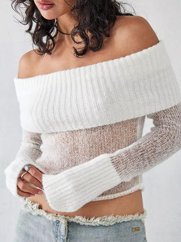 Off Shoulder Long Sleeves Knits