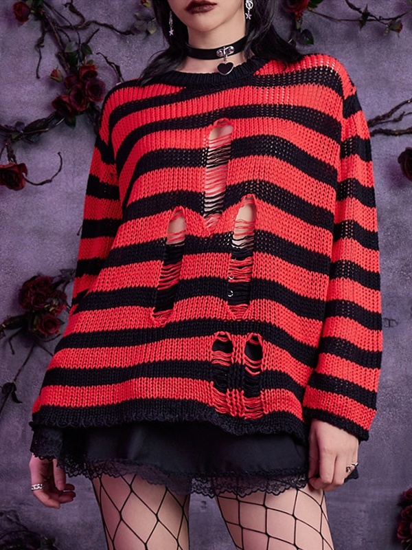 Cutout Tattered Baggy Thin Long Sleeve Knit