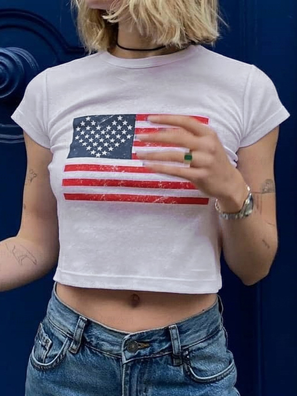 Contrast Color Stitching Crewneck Short Sleeve Knits