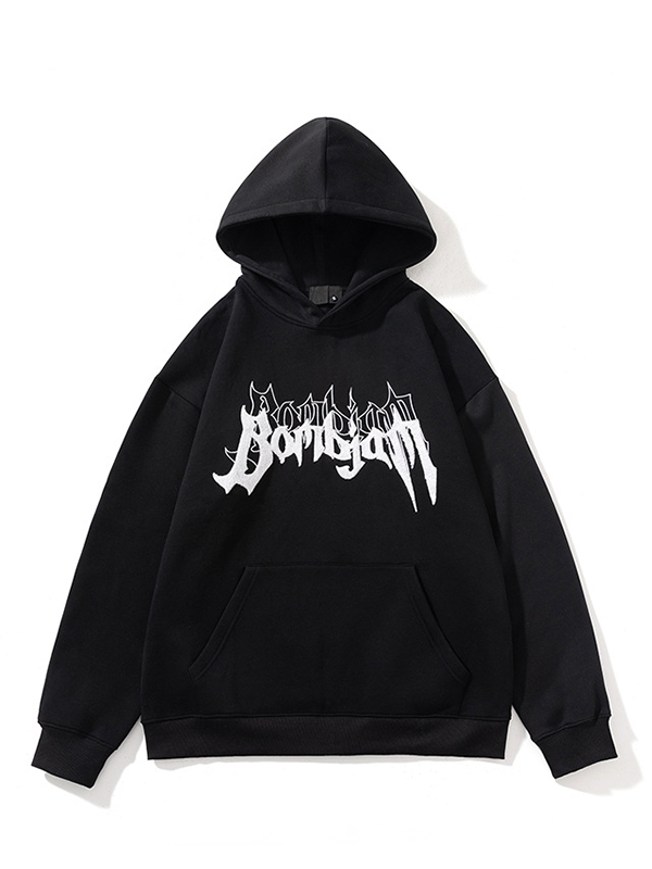 Men’s Lettering Plush Print Oversized Long Sleeve Hoodie
