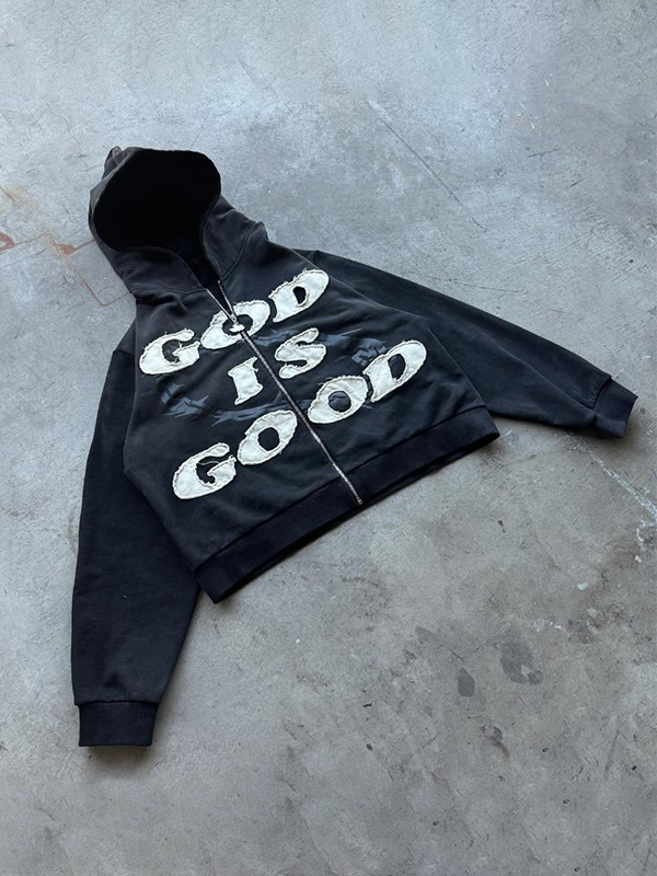 Blurred Graphic Print Zip Up Oversized Hoodie