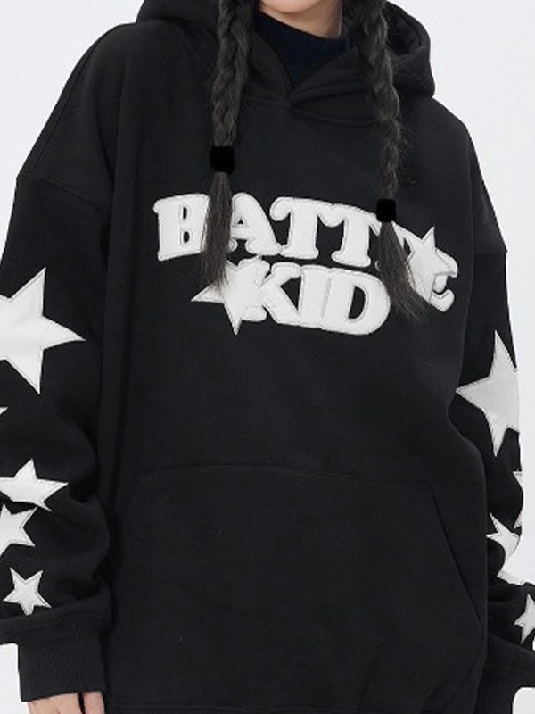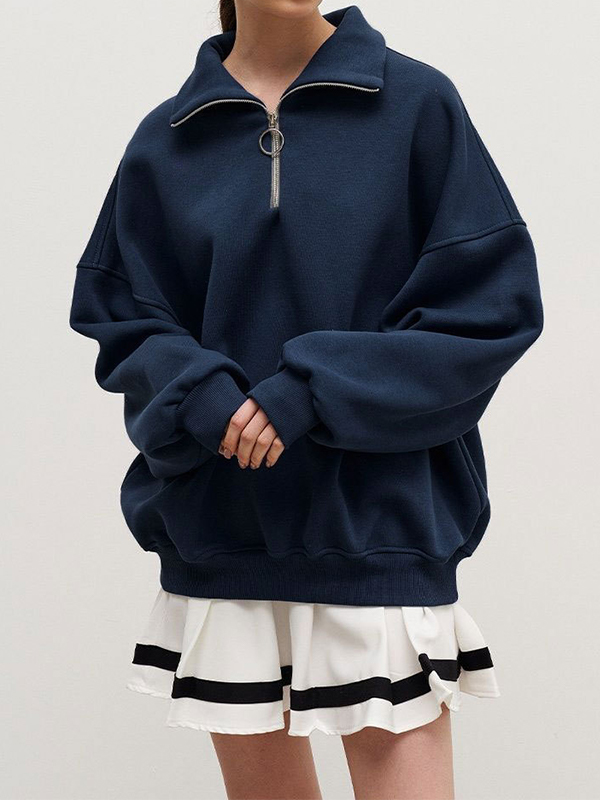 Letter Embroidered Piping Lapel Neck Sweatshirt