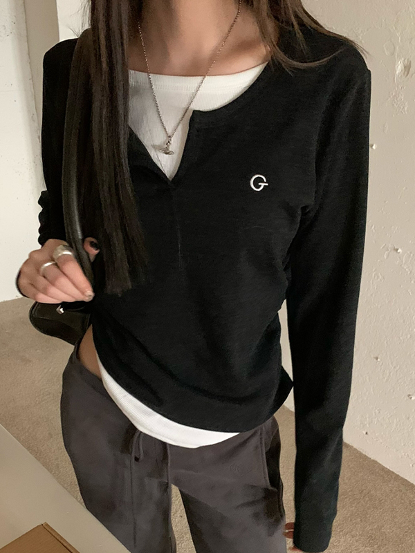 Fake Two Piece Contrast Color Long Sleeve Tee