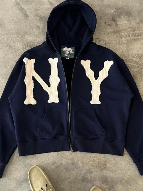 Vintage Solid Star Badge Lapel Neck Zip Up Jacket