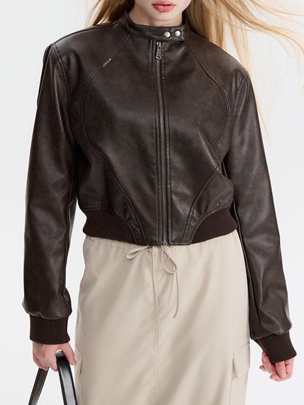 Splice Leather Short Varsity Jacket