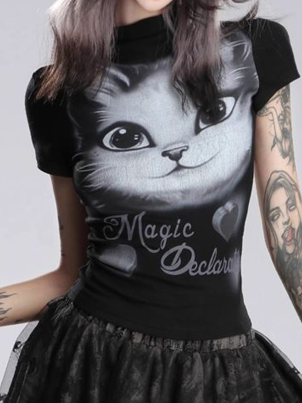 Cat Print Short Sleeve Tee
