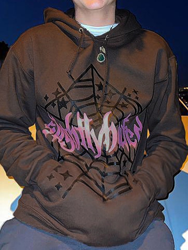Men’s Contrast Color Spider Web Print Oversized Hoodie